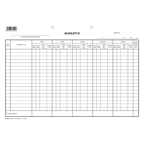 5 napos jelenléti ív szabadlap A/4 fekvő