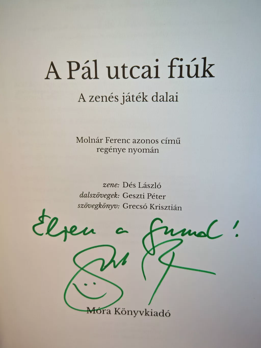 GESZTI PÉTER ÁLTAL DEDIKÁLT KOTTAFÜZET - A Pál utcai fiúk - A zenés játék dalai - Kottafüzet az előadás fotóival