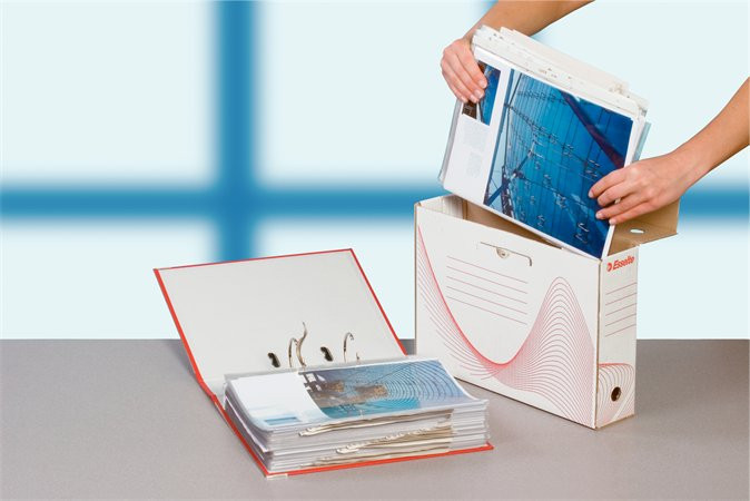 - tökéletes megoldás iratrendezőkből kiemelt dokumentumok archiválásához - stabil, duplafalú konstrukció - egy 75/80 mm vagy kettő 50 mm széles iratrendező tartalmának archiválásához - könnyen összeállítható, összeállítási útmutató a dobozokon - A4 méretű lapok, mappák és foolscap méretű lapok tárolására - ideális méret polcokon történő archiváláshoz, a dobozok fektetve vagy állítva is tárolhatók - 100%-ban újrahasznosított és 100%-ban újrahasznosítható karton alapanyag, FSC minősített - méret: 100x352x250 mm