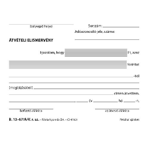 Átvételi elismervény 50x3 lapos tömb A/6 fekvő