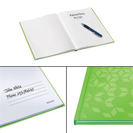 Beíró, A4, vonalas, 80 lap, keményfedeles, LEITZ "Wow", zöld