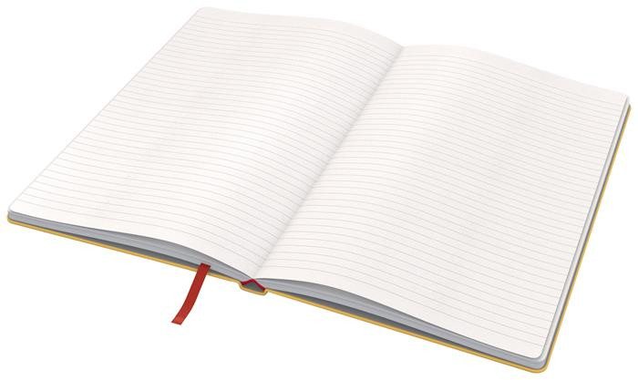 Beíró, A5, vonalas, 80 lap, keményfedeles, LEITZ "Cosy Soft Touch", melegsárga