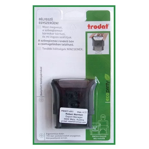 Bélyegző Trodat 4911 Eco szövegbélyegző a szöveglemez rendelésre jogosító bónnal