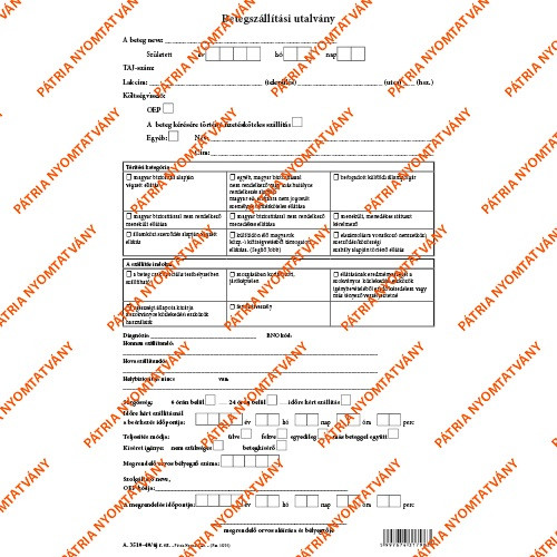 Betegszállítási utalvány szabadlap A/4 álló