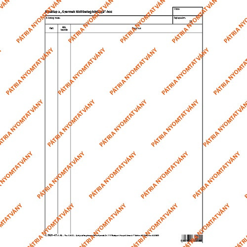 Betétlap a gyermek tüdőbeteg kórlapjához szabadlap A/4 álló