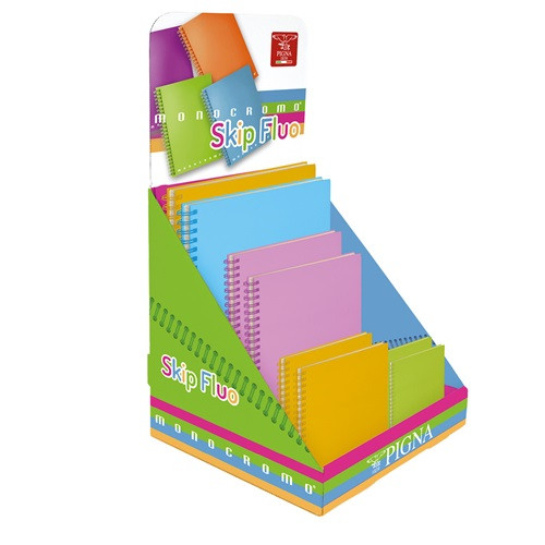 Display Pigna Monocromo PPL Skip Fluo többféle méret kockás spirálfüzetekkel