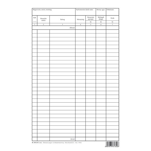 Élelmezési anyag ár- és értéknyilvántartó lap A/4 álló