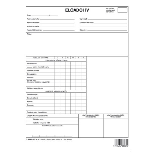 Előadói ív szabadlap A/4 négyoldalas