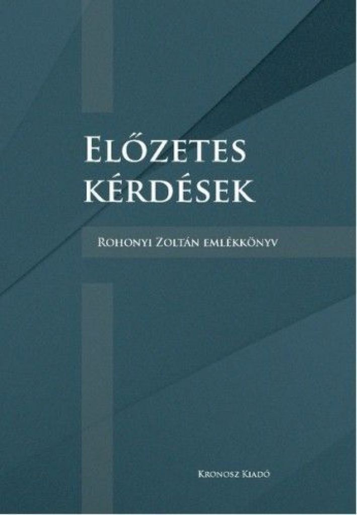 Ezt a kötetet nem emlékkönyvnek terveztük, hanem tisztelgő, születésnapi ajándéknak. A kötet szerzőit eredetileg tehát arra kértük föl, hogy saját kutatási területükről hozzanak valami ajándékot tiszteletük kifejezéseként. Már a tartalomjegyzékből is kiderül, hogy az itt közölt tanulmányok az irodalomtudomány legkülönfélébb területeiről származnak. Az egyetlen dolog, ami összefűzi az írásokat, az Rohonyi Zoltán személye, illetőleg, sajnos, már csak az emléke. A szerzők ugyanis vagy kollégái, vagy pályatársai, vagy tanítványai voltak Rohonyi Zoltánnak. A kötet címe (Előzetes kérdések) az ő egyik jellegzetes, A romantikus korszakküszöb című könyvében használt kifejezése. Tanulmányaiban, mielőtt rátért a tárgyalt művek értelmezésére, előbb mindig az interpretáció kereteit, fogalmait igyekezett tisztázni: ezeket nevezte előzetes kérdéseknek. Kötetünkben a tisztelgő tanulmányokat egy, a hagyatékból előkerült Rohonyi-írás követi, amely híven fejezi ki szakmai hitvallását, kutatói ars poeticáját. A gyűjteményt műveinek bibliográfiája zárja, amely egy sajnálatos módon immár befejezett életmű szikár adatait tartalmazza.