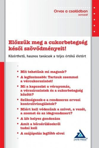 A cukorbetegség diagnózisával a beteg élete gyökeresen megváltozik. Állandó kezelésre van szüksége, át kell alakítania étrendjét, életébe napi többszöri vércukormérést kell beépítenie. Legyenek azok a szürke hétköznapok, a vakációk vagy a családi ünnepek, mindent meg kell tennie azért, hogy vércukorszintje a kellő határértékek között maradjon. Mindez sok-sok odafigyelést, olykor lemondást, s talán még több akaraterőt követel. Olykor nagy a kísértés, hogy felrúgja az új szabályokat, ha semmilyen panaszt nem tapasztal, csupán a vércukormérő, vagy a laborlelet mutatja, hogy az érték nem stimmel. A betegség késői szövődményei alattomosan alakulnak ki, sokáig nem okoznak tüneteket. Ne várja meg, amíg az ajtóban kopogtatnak, hiszen az orvostudomány modern eszköztára a beteg együttműködésével karöltve hosszú évtizedekre teljes értékű, szövődményektől mentes életet biztosíthat, valamint van mód arra is, hogy a már kialakult szövődmények előrehaladásának ütemét lassítjuk vagy akár megállítsuk. Kiadványunk célja, hogy a betegség késői szövődményeiről közérthető információval, megelőzésükről sok-sok hasznos tanáccsal szolgáljunk, amelyek birtokában a cukorbetegek tudatosan tehetnek meg mindent egészségük védelméért.