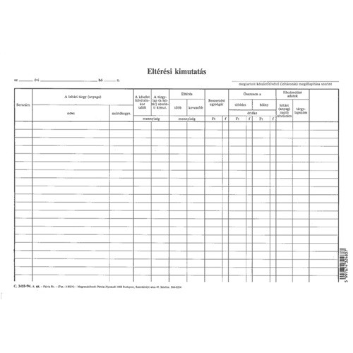 Eltérési kimutatás szabadlap A/4 fekvő