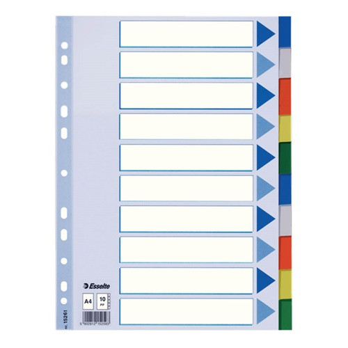 Elválasztólap PP Esselte A/4 10 részes színes 15261