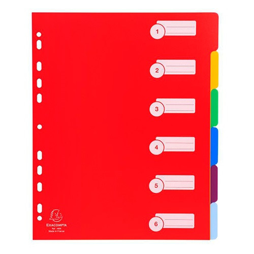 Elválasztólap PP Exacompta A/4 maxi, 6 részes színes