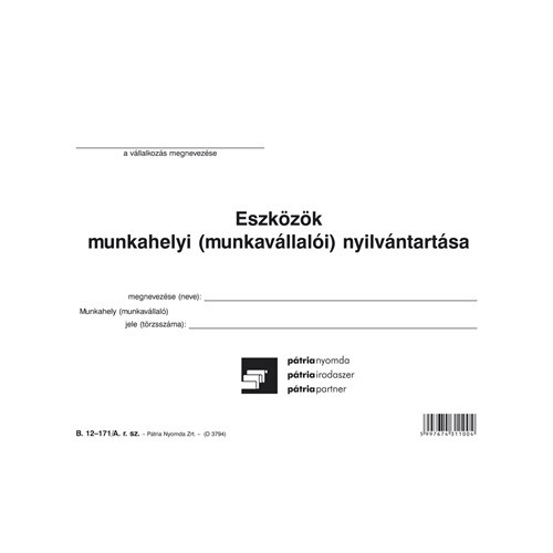 Eszközök munkahelyi nyilvántartása 67 tételes A/5 fekvő