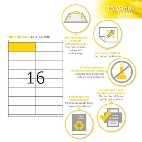 Etikett címke Topstick 105x35 mm szegéllyel 100 ív 1600 db/doboz