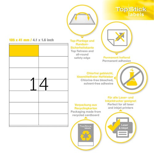 Etikett címke Topstick 105x41 mm szegéllyel 100 ív 1400 db/doboz