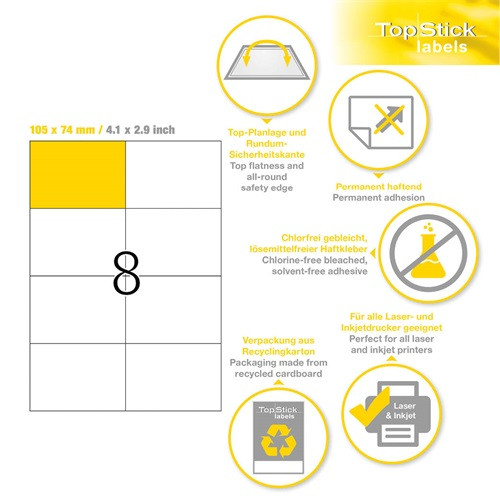 Etikett címke Topstick 105x74 mm szegély nélküli 100 ív 800 db/doboz