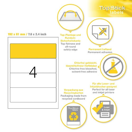 Etikett címke Topstick 192x61 mm szegéllyel 100 ív 400 db/doboz