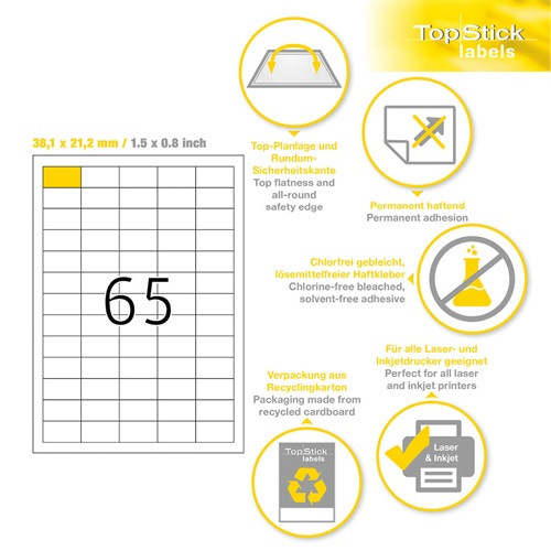 Etikett címke Topstick 38.1x21.2 mm szegéllyel 100 ív 6500 db/doboz