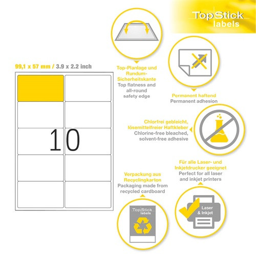 Etikett címke Topstick 99.1x57 mm szegéllyel 100 ív 1000 db/doboz