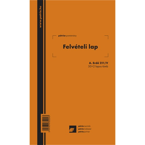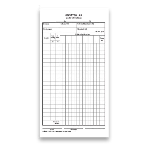 Felvételi lap ipari fához 50x2 lapos tömb