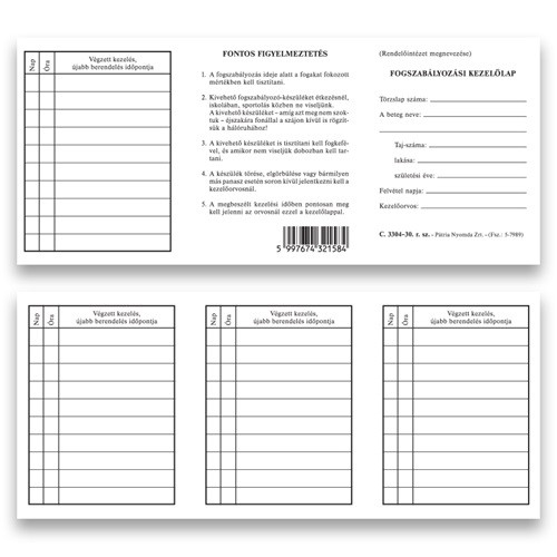 Fogszabályozási kezelőlap 210x100 mm