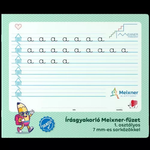 • Írás gyakorló füzet az 1. osztályosok számára, amely a Meixner Alapítvány együttműködésével és ajánlásával jött létre.