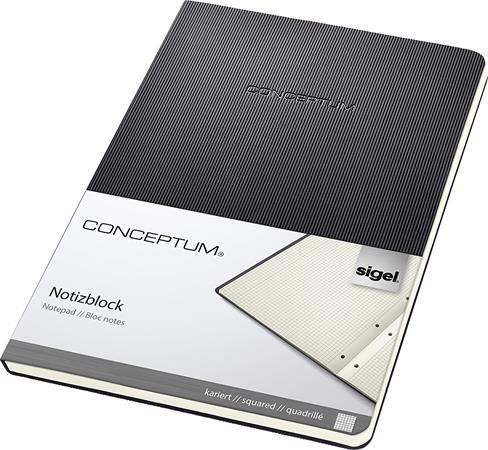 Füzet, exkluzív, A5, kockás, 60 lap, keményfedeles, SIGEL "Conceptum", fekete