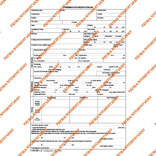Gyermekgyógyászati kórlap szabadlap A/4 négyoldalas