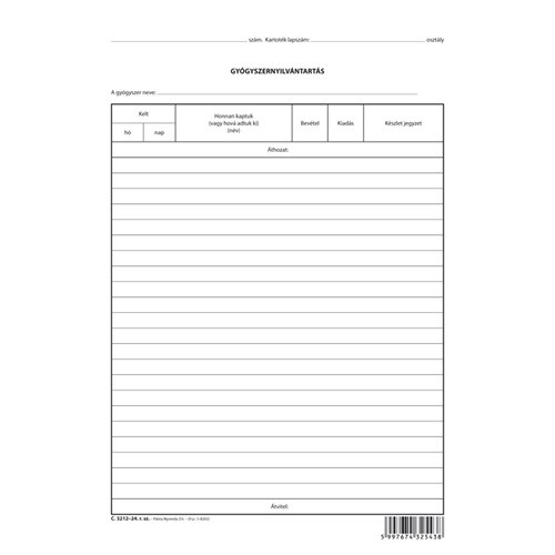 Gyógyszernyilvántartás szabadlap A/4 álló