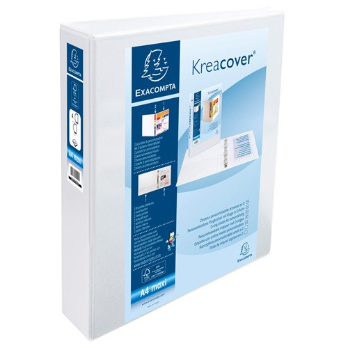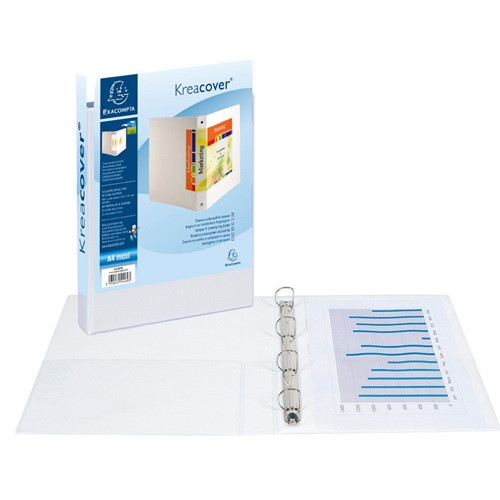 Gyűrűs könyv Exacompta Kreacover A/4 4 gyűrűs 75 mm gerinccel panorámás PVC fehér (50 mm)