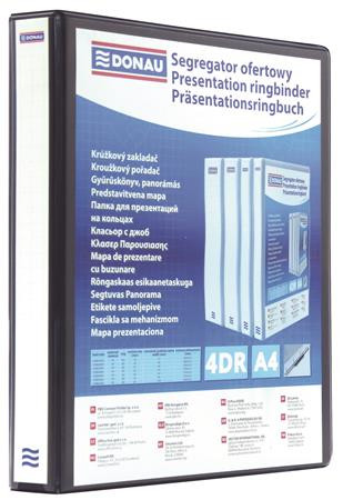 Gyűrűs könyv, panorámás, 4 gyűrű, D alakú, 20 mm, A4, PP, DONAU, fekete