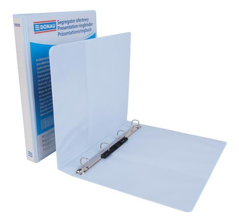 Gyűrűs könyv, panorámás, 4 gyűrű, D alakú, 37 mm, A4, PP, DONAU, fehér