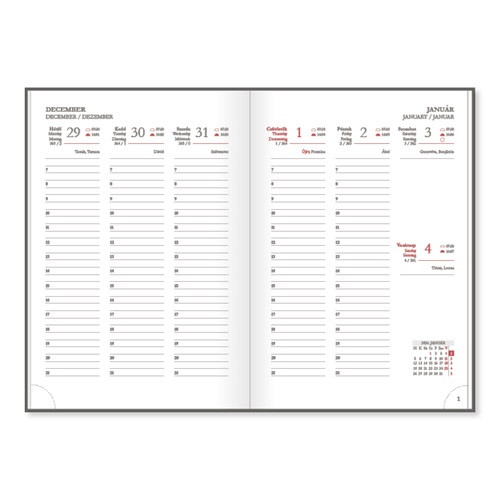 • Oldalszám: 140 oldal – 16 információs oldal, 112 naptároldal, jegyzetek, telefonregiszter, 2027 januári tervező