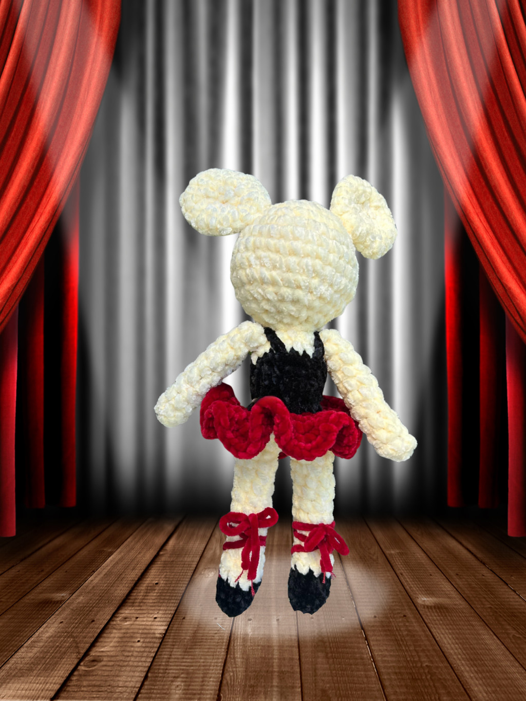 Horgolt piros balerina egérke figura