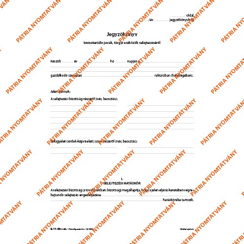 • immateriális, vagyis nem anyagi javak (szellemi termékek) és tárgyi eszközök selejtezésének szabályos végrehajtásához használt nyomtatvány