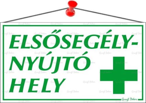 Információs tábla, 22,5x12,5 cm, "Elsősegélynyújtó hely"