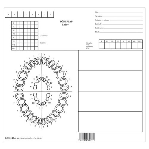 Iskolafogászati törzslap lány szabadlap 247x230 mm