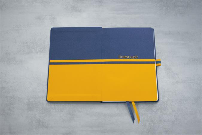 Jegyzetfüzet, exkluzív, A5, vonalas, 88 lap, keményfedeles, SIGEL "Linescape", kék-sárga