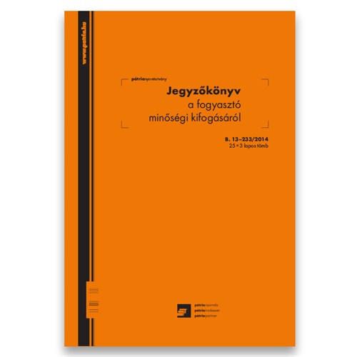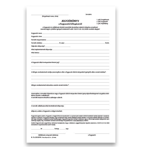 Jegyzőkönyv a fogyasztó minőségi kifogásáról 25x3 lapos tömb A/4 álló