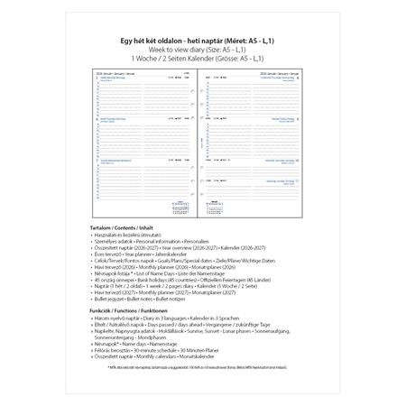 Kalendárium betét, tervező, Filofaxhoz, A5, heti, 1 hét/2 oldal, 2026