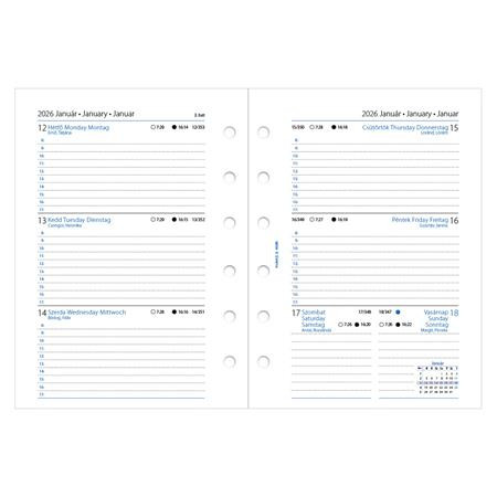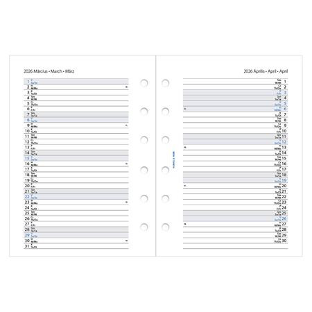Kalendárium betét, tervező, Filofaxhoz, pocket méret, heti, 1 hét/2 oldal, 2026