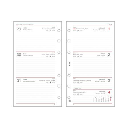 Kalendárium betét, tervező, heti, "M", SATURNUS, fehér 2026