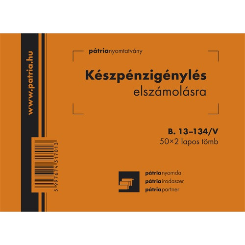 Készpénzigénylés elszámolásra 50x2 lapos tömb A/6 fekvő -i