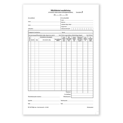 Kiküldetési rendelvény a hivatali, üzleti utazás költségtérítéshez 25x2 lapos tömb A/4 álló