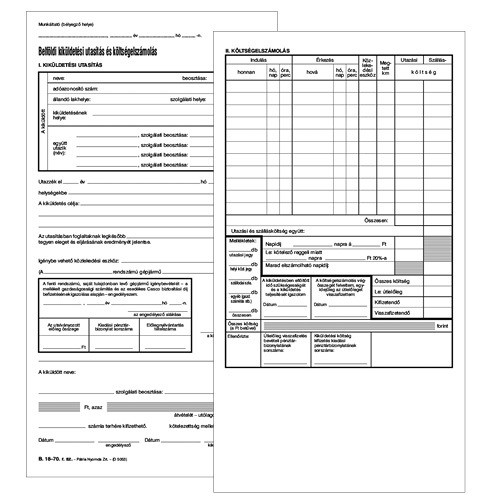 Kiküldetési utasítás (belföldi) 50 lapos tömb 140x285 mm