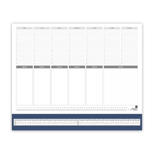 A 59×41 cm-es könyöklő ideális irodai és adminisztratív környezetbe, ahol a hatékony tervezés és a letisztult megjelenés kéz a kézben jár. A praktikus heti beosztás és a jegyzetmezők gyors áttekintést biztosítanak, míg a színes műbőrcsík elegáns, egységes megjelenést kölcsönöz az íróasztalnak. A minőségi papír és a stabil felület biztosítja a gördülékeny írásképet és a hosszú távú használhatóságot.