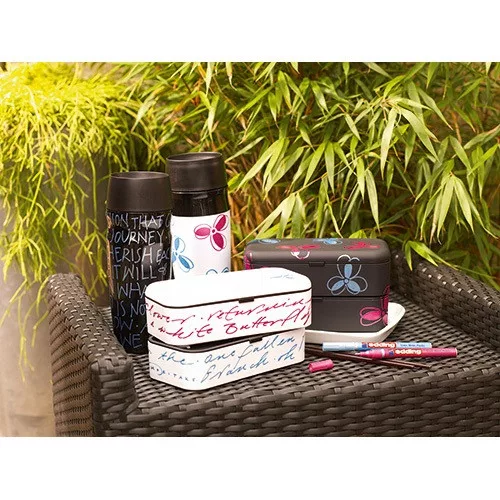• Üveg, porcelán, műanyag, fém illetve szinte minden felület feliratozására, jelölésére alkalmas, különösen ajánlott szennyezett felületekhez, lakk- és dekorációs fémtestű marker
