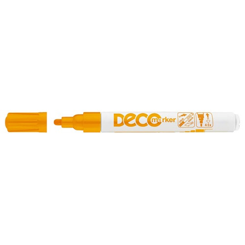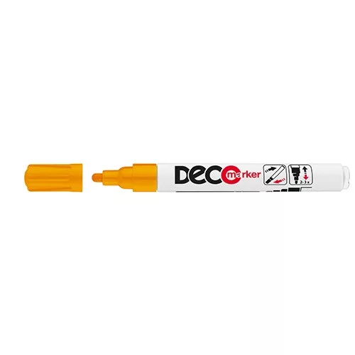 • üveg, kerámia, műanyag, fém, illetve szinte minden felület jelölésére, díszítésére alkalmas, műanyag testű, kerekített csúccsal ellátott marker permanent, lakkszerűen fedő festékkel töltve
