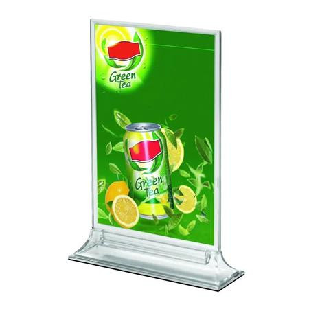 Az A4 méretű asztali laptartó praktikus és esztétikus megoldás információk, menük vagy hirdetések kihelyezésére különböző környezetekben.